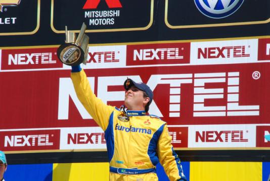 Após uma corrida emocionante, com muitas quebras e acidentes, o carioca Cacá Bueno (Mitsubishi) conquistou neste sábado a sétima etapa da Copa Nextel Stock Car, em Curitiba. Ricardo Mauricio e Marcos Gomes completaram o pódio.