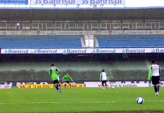 No treino do Grêmio nesta tarde, no Olímpico, o técnico Mano Menezes comandou o coletivo, que terminou com a vitória dos titulares por 1 a 0 com gol de Diego Souza.