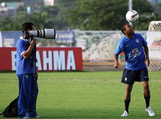 Depois de dar algumas voltas no campo e realizar treinos específicos na sala de musculação, o jogador conversou com a imprensa e mostrou otimismo em estar à disposição de Dunga para encarar os colombianos.