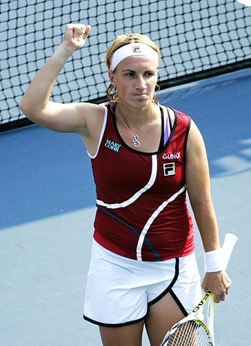 Em um jogo equilibrado e aberto até quase o seu final, a russa Svetlana Kuznetsova venceu a austríaca Sybille Bammer por 2 sets a 1, parciais de 2/6, 6/4 e 7/5, e se classificou para as quartas-de-final do Torneio de Zurique. A segunda favorita ao título enfrenta agora a italiana Francesca Schiavone, que bateu a suíça Patty Schneyder por 2/6, 6/3 e 6/4 para continuar na competição.