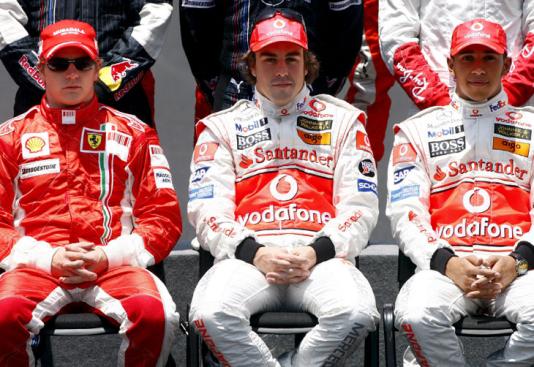 Kimi Raikkonen, Fernando Alonso e Lewis Hamilton posam para foto antes do GP do Brasil
