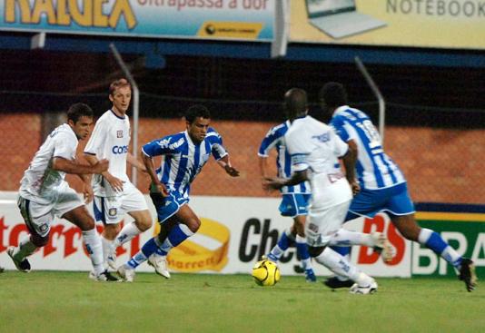 As investidas do time paulista eram todas na dependência de Luizão. Era cruzamento, passe rasteiro, e jogada individual. Numa das chances, aso 20 minutos, após receber um belo passe, o atacante mandou rasteiro. Eduarto Martini segurou firme. Em outro lance, Luizão ajeitou de cabeça e Beto, dentro da pequena área, livre, mandou pra fora.