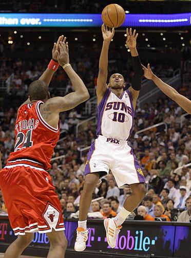 O ala-armador brasileiro Leandrinho continua crescendo na NBA e mais uma vez foi o destaque do Phoenix Suns, na vitória por 112 a 102 sobre o Chicago Bulls. O jogador anotou 25 pontos na partida. Ele mostrou pontaria nos tiros de três pontos, acertando cinco de sete, e fechou o jogo com oito de 15 arremessos de quadra. Além disso, converteu quatro lances livres.