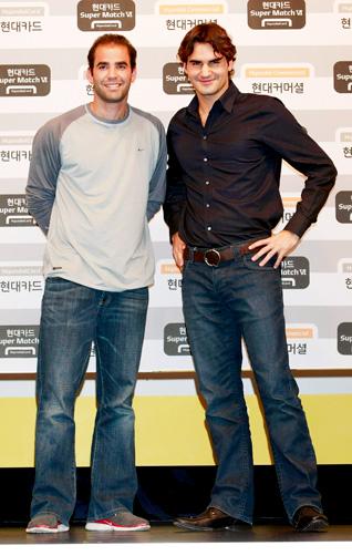 O melhor tenista da atualiadade contra um dos maiores de todos os tempos. O suiço Roger Federer, de 26 anos, e o norte-americano Pete Sampras, de 36, se enfrentam em três partidas de exibição nesta semana na Ásia. O primeiro duelo será em Seul, na Coréia do Sul, nesta terça, a partir das 7h (de Brasília), com transmissão ao vivo do SporTV. A informação é do Globoesporte.com.
