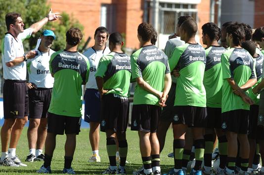 A retomada dos treinos do Grêmio, após o empate de sábado em 2 a 2 com o Caxias, foi de muita conversa. Vagner Mancini exigiu maior atenção dos jogadores — sobretudo quando a equipe estiver vencendo — , e projeta mudanças no time que enfrentará o Novo Hamburgo, neste sábado, no Olímpico. Além da estréia de Roger, que entrará no lugar do suspenso André Luís, Perea também poderá ser o novo reforço em campo. Ambos já estão inscritos no Gauchão.