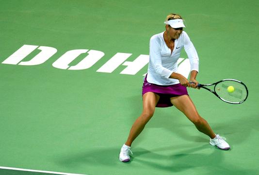 Quarta cabeça-de-chave, a russa Maria Sharapova estreou com vitória no Torneio de Doha, no Catar. Nesta quarta, ela precisou de três sets para vencer a compatriota Galina Voskoboeva, com parciais de 6/4, 4/6 e 6/1, em 2h05min de jogo.