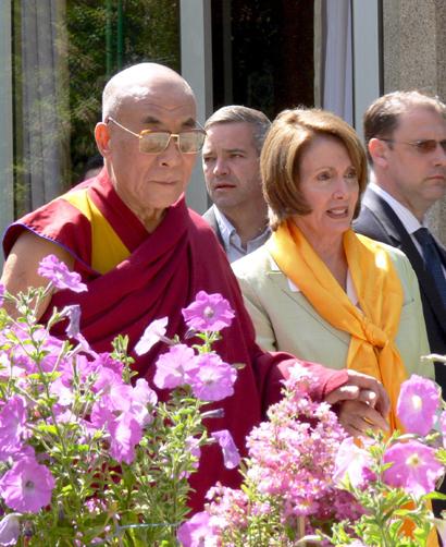 Acompanhada de nove congressistas, Pelosi visitou o Dalai Lama no complexo templário oposto à residência habitual do líder espiritual budista. Pelosi foi uma das líderes políticas que apostou forte para que a Medalha de Ouro do Congresso dos EUA recaísse no ano passado sobre o Dalai Lama.