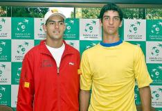 Thomaz Bellucci (D) enfrenta Santiago Giraldo (E) às 10h desta sexta-feira