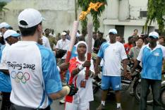A passagem da tocha olímpica neste domingo pela cidade de Dar es Salam, na Tanzânia, foi marcada pela tranqüilidade, ao contrário do que houve nos revezamentos de Londres e Paris.