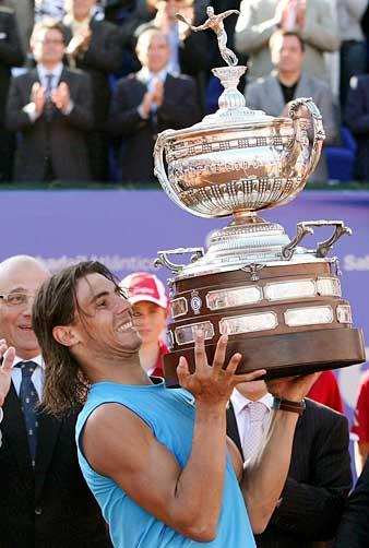 O espanhol Rafael Nadal segue imbatível em quadras de saibro. Neste domingo, ele perdeu seu primeiro set em duas semanas, mas conseguiu derrotar o também espanhol David Ferrer por 2 sets a 1, parciais de 6/1, 4/6 e 6/1, e conquistar o título do Torneio de Barcelona, após 2h14min de jogo.
