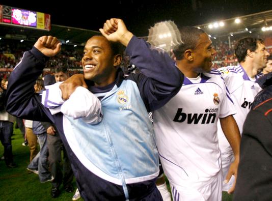 Com dois gols nos últimos três minutos, o Real Madrid ganhou de virada do Osasuna e conquistou neste domingo o título espanhol, com três rodadas de antecedência. O holandês Robben e o argentino Higuaín fizeram os gols da vitória por 2 a 1.