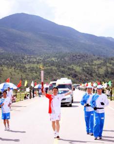 O início do percurso foi marcado por uma homenagem: os primeiros a carregar o fogo foram Zhang Zilan, um jovem de 13 anos de Sichuan, e He Zhensheng, que nasceu em Lijiang na época do terremoto, de sete graus na Escala Richter e que deixou 300 mortos.