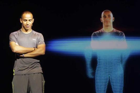 Lewis Hamilton participou ontem, em Amsterdã, do lançamento de uma linha de material esportivo da Reebok, sua nova patrocinadora. O piloto inglês teve a companhia de seu holograma, com quem brincou durante a apresentação - conversou com ele e até tentou abraçá-lo. No domingo, o Hamilton de carne e osso volta às pistas, no GP da Inglaterra.