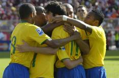 "A equipe brasileira teve Robinho, Kaká e Adriano como artífices da goleada, que ameniza em parte as inúmeras críticas sofridas recentemente pelo técnico Dunga."