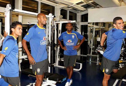A Seleção Brasileira chegou ao Rio nesta segunda-feira e já foi a campo. Os reservas fizeram um jogo-treino contra o time de aspirantes do Botafogo, no Engenhão. O Brasil venceu por 2 a 0, com gols de Nilmar e Jô. O técnico Dunga aproveitou para observar os possíveis substitutos do lateral-esquerdo Kléber, expulso diante do Chile, e do volante Gilberto Silva, que levou o segundo o segundo cartão amarelo.